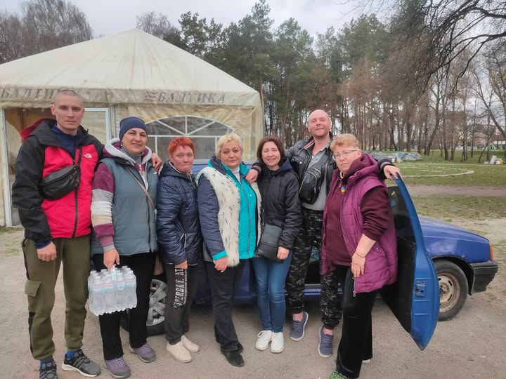 Розповіли Тетяна Бородіна і Олена Медведовська: «Під’їжджає машина… радянський автопром, трьохдверна, заляпана. В машині троє дорослих і велика біла гладкошерста собака. Попереду на пасажирському сидінні – чоловік, не виходить, вийшла жінка, просить підійти до пасажира на передньому сидінні. Таня каже: «Я тільки поглянула і подумала, що людина з інвалідністю». Підходять дівчата. Знайомляться. Біженці з Чернігова. Хотіли бути вдома, але коли снаряд попав в будинок сусідів, вирішили, що треба їхати. Місяць вже в Кропивницькому, приїхали на запрошення друга Бориса: «Ми живемо вже місяць, грошей з нас ні за що не беруть. Вирішили їхати далі на захід». Вирахували, що на дорогу не вистачає 700 з чимось гривень. Дівчата трохи розгубились, але тут прибігла Тетяна Сила: «Дівчата, давайте скинемось». Дівчата скинулись, принесли гроші. У жіночки тремтить голос, у чоловіка тремтять руки. Виявилось, що чоловік – людина відома в Україні і не тільки… параолімпієць, звуть Роман Безлюдний. На своїй інвалідній колясці разом з друзями у 2018 році підкорив Говерлу..., розказують, як їм допомагали сусіди: «У нас колесо вже було ніяке, а запаски не було, так сусід у доньки забрав і нам через паркан перекинув». Довго говорять, не можуть відійти одне від одного… Роман просить допомоги вийти з машини, щоб сфотографуватися на пам’ять. Фотографуються, нарешті вони їдуть… дівчата залишаються з відчуттями, які неможливо передати і охарактеризувати… пройшов місяць, а Тетяна (Бородіна) не може заспокоїтись і емоційно переповідає мені цю історію." Фото мені колись перекинула Таня, ось – знайшла. Дівчат, це ж вона?