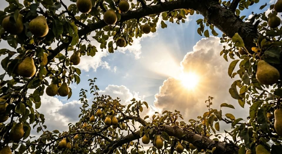 Блукав садками. Фотографував. Порівнював з картинками на садівничих сайтах, і навіть куштував. Яка радість – перша удача! Ренет Помаранчевий Кокса, він же Кокс Пепін Помаранчевий!!! Яблука з легким присмаком вишні. Звідки ці яблука у загубленому серед степів маленькому селі? Далі ще удача — Кайзер Вільгельм, він же просто Вільгельм!. Цей легендарний сорт був практично в кожному саду Німеччини та Австрії. Йшла друга година. Я відчував себе серед саду віком у пів століття ботаном вищої кваліфікації, розглядаючи на сусідньому дворищі грушу сорту Олександр Лукас. На полотні, створеному білою хмарою в небі, висіли серед листя груші, на які з-поза хмари підглядало сонце, торкаючись їх своїми променями…